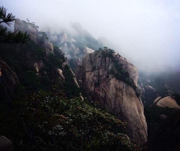 到達黃山景區,我們下車換乘景交。乘坐景交登山時,那幾個180度的大轉彎著實讓同事們緊張刺激了一把。伴隨著一路的翠竹,我們到達黃山底下,開始登山。黃山以“天下第一奇山”聞名世界,奇峰、怪石、云海、溫泉最為突出。攀登的過程很累,同事們你拉我扶,互幫互助,汗水和霧水打濕了頭發、潤濕了衣服,也渾不在乎。山路崎嶇陡峭,大家都在挑戰自我中,收獲各種心得。不少體質弱的女同事登上山頂后驚呼:“如果不是公司組織,估計一輩子也沒有攀登黃山的勇氣。真不敢相信,竟然挑戰成功。”最美的風景,從來不是目的地。攀登中,沿途的風景實在是目不暇接,即使累得上氣不接下氣,可愛的同事們喘著粗氣,舉起手中的相機、手機,將各個美麗、精彩的瞬間都收進了鏡頭里,留作紀念。“五岳歸來不看山,黃山歸來不看岳”。直至身臨其境才能深刻的體會其中感慨。蒼翠的松樹姿態婀娜,峭立的石壁巋然而立。從山上往下看,白茫茫的云霧徐徐升起,于是一座座山峰像害羞的姑娘般遮起了面紗,讓人不能看得真切。那浩瀚的云海,白得一塵不染,仿佛真有仙氣似的,更讓你覺得像置身于仙境,有種飄飄欲仙的感覺。迎客松、百步云梯、一線天、鰲魚洞、天海、光明頂……每一處都或驚、或奇、或險、或嘆,美不勝收,讓你流連忘返。翌日,坐完索道,大家懷著對黃山的贊美之情奔赴下一站。