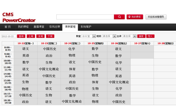 翰博爾云錄播平臺提供同步課表功能,提前把課表輸入平臺后,老師只需帶著教材按時上課就可以了。系統會自動開啟攝像機進行課程的錄制,下課后攝像機會自動保存并關機。錄制的課程能自動分類并上傳到后臺,學生在課下只需登錄便可進行在線學習。云錄播平臺簡化了以前繁瑣復雜的操作,讓老師省心又省力。同時也解決了對有效的音視頻無法按照學科進行分類的難題。