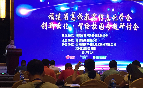 福建高校教育信息化學會會長張文德等領導分別作了專題報告,整個研討會內容豐富、主題鮮明,討論的話題也與高校校園信息化建設息息相關:既有對目前校園信息化建設發展現狀及校企合作共建智慧校園取得成效的案例介紹,也有對高校未來信息化建設發展的展望及校企融合的進一步思考。