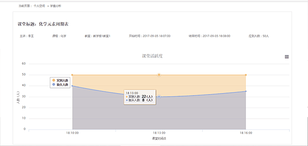 傳統(tǒng)課堂是灌輸性教學(xué),重視客觀普遍的知識(shí)傳授,學(xué)生被當(dāng)做知識(shí)容器,然而這個(gè)容器承載了多少內(nèi)容,消化了多少內(nèi)容,往往缺少有效的評(píng)估。北科大智慧課堂通過翰博爾具有人工智能的“人臉識(shí)別檢測(cè)算法”,自動(dòng)統(tǒng)計(jì)學(xué)生在課堂當(dāng)中的抬頭率,生成課堂活躍度曲線圖,動(dòng)態(tài)反饋學(xué)生在學(xué)習(xí)過程中的接受程度和心理狀態(tài),方便教師對(duì)教學(xué)狀況的全面評(píng)估,也有助于教師對(duì)課程的難點(diǎn)進(jìn)行著重分析。如此一來,既解決了困擾教師多年的到課點(diǎn)名,并可實(shí)時(shí)分析教學(xué)效果,進(jìn)行學(xué)情反饋,有效幫助學(xué)生提升學(xué)習(xí)興趣和學(xué)習(xí)效率。