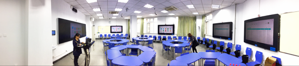 走進(jìn)教室,首先映入眼簾的是高科技納米黑板,一鍵輕拍,教材即顯,教師告別繁重的板書書寫,輕松開啟無涯學(xué)海的遨游之旅;人工智能的“人臉識(shí)別”技術(shù),統(tǒng)計(jì)到課率和學(xué)情分析雙應(yīng)用;師生自帶手機(jī)或移動(dòng)設(shè)備,無線投屏到納米黑板,課堂氛圍生動(dòng)活躍;有序分布的一體機(jī)和靈活多變的多邊形課桌組合,方便學(xué)生隨時(shí)隨地進(jìn)行分組研討 ......這種新型先進(jìn)的教學(xué)方式和教學(xué)技術(shù)的深度融合,信息化現(xiàn)代化教育教學(xué)最美的樣子,在北京科技大學(xué)逸夫樓真實(shí)地呈現(xiàn)。