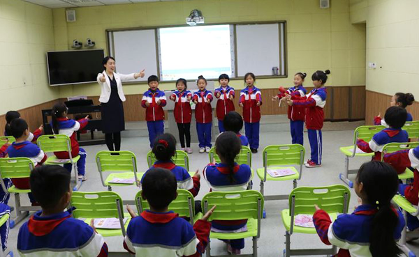 河南鶴壁山城區石林鎮石林中心校校長高海娜帶領3所學校的學生用專遞課堂的形式共同學習一節音樂課,課堂上靈動的教學風格,多樣的教學方式,同時吸引著網絡兩端的每一位學生。