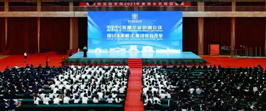 在經過為期三天緊張而充實的培訓日程后,7月10日,鄭州西亞斯學院以“探討未來模式 推進教育改革”為主題的2021年暑期全員培訓工作會議在綜合體育館圓滿落幕。