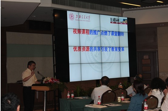 其次,由上海交通大學(xué)教育技術(shù)中心副主任沈宏興先生以“錄播技術(shù)在高校教學(xué)中的應(yīng)用與推廣”為主題作了演講,就優(yōu)質(zhì)教育資源的共享引發(fā)教育變革、建設(shè)怎樣的優(yōu)質(zhì)教育視頻資源、錄播技術(shù)在視頻資源建設(shè)中的應(yīng)用及探討錄播教室全覆蓋的可能性這四點進行了研究和探討。“如果我們的大學(xué)不努力,我們的大學(xué)今后將會成為世界名校的網(wǎng)絡(luò)課堂;如果我們的教師不努力,我們的教師今后將會成為世界著名教授的助教”,沈宏興先生的這番話一講出,就震撼了全場的所有人員,引起了大家的深思。